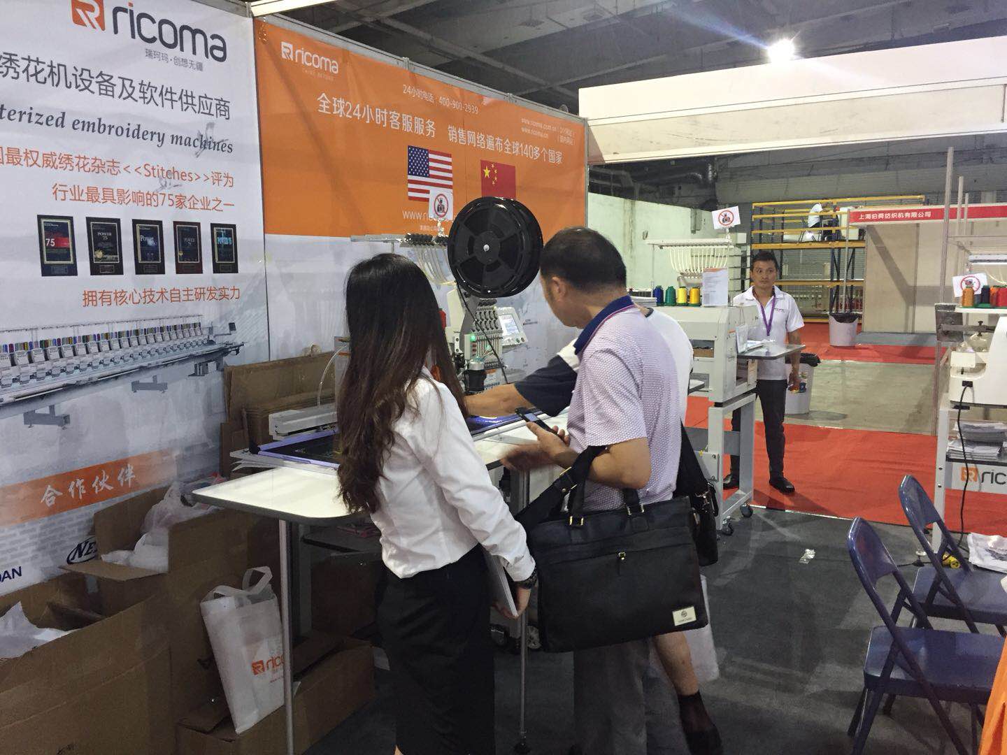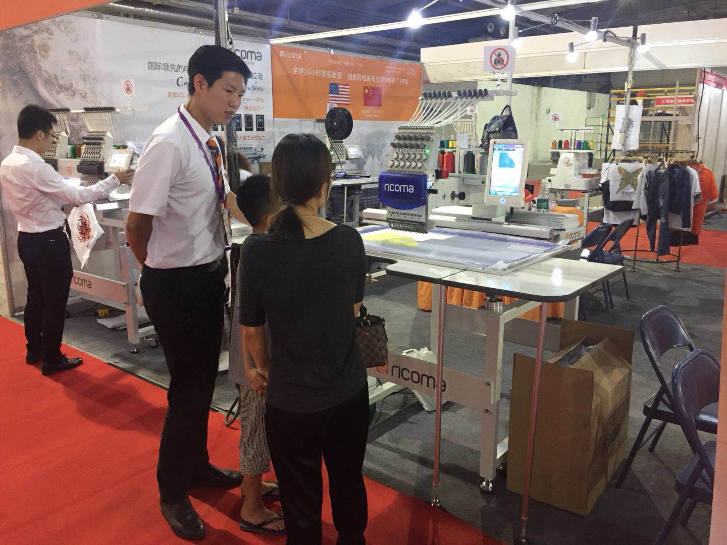 單雙頭機(jī)、EM系列單頭機(jī)、SWD系列單機(jī)頭、CHT2系列帽繡機(jī),此外帶有照片繡新功能機(jī)型的單頭機(jī)也亮相了此次展會(huì)。我們的展位