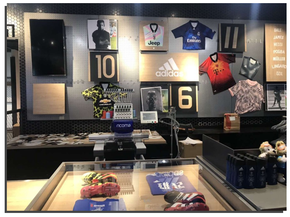 繼2017年12月瑞珂瑪繡花機(jī)進(jìn)駐阿迪達(dá)斯上海楊浦區(qū)五角場(chǎng)專(zhuān)賣(mài)店以來(lái),瑞珂瑪繡花機(jī)優(yōu)秀的刺繡效果,為