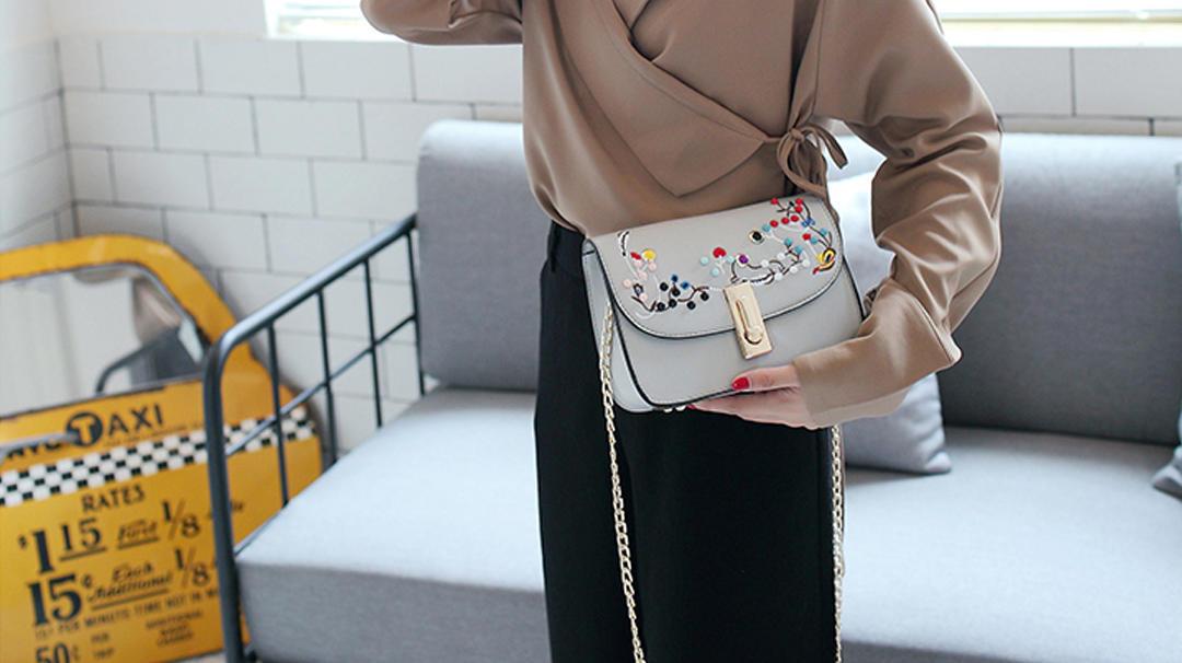 如今刺繡元素也常常出現(xiàn)在配飾上,簡約的鏈條刺繡小方包,展現(xiàn)簡約與復(fù)古的沖撞美!