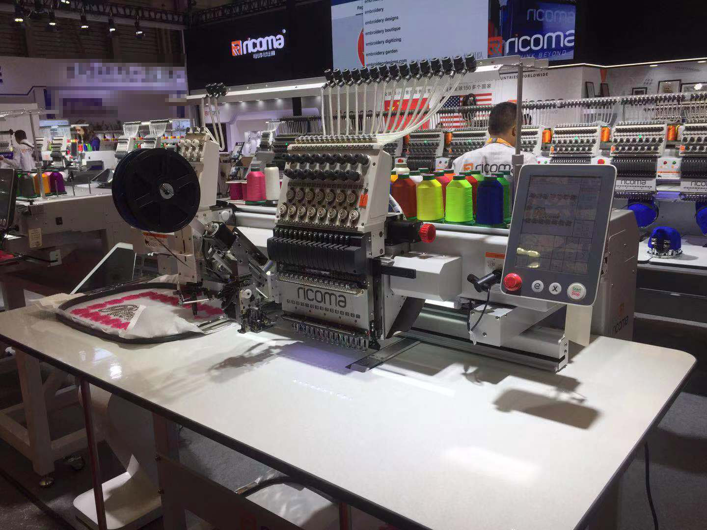 瑞珂瑪技術。參觀者能夠親眼看到瑞珂瑪刺繡機的運行方式以及生產出的高品質刺繡產品。