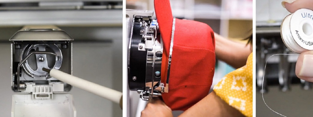 請確保有一個完整的梭芯,以避免進行帽繡時出現(xiàn)任何延誤。