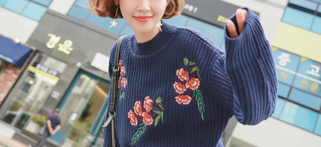 刺繡針織衫怎么搭配都是很合適的。