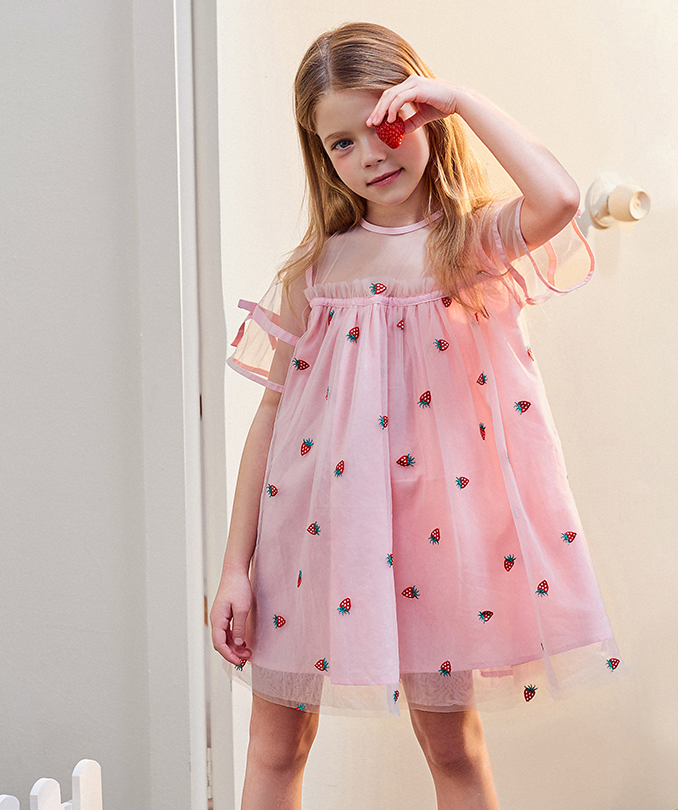 小草莓刺繡網(wǎng)紗連衣裙,穿上就是甜美女孩
