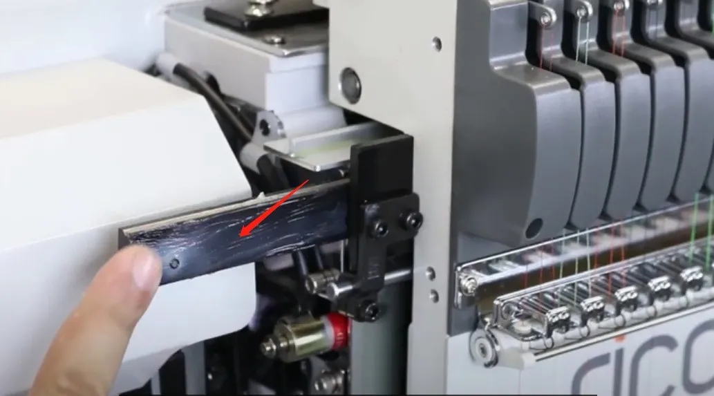 2、框架﹑驅動導軌:主要是導軌內雜物的清理,由于此處往往是繡花時剪下的線團﹑無紡布碎片進入處,因而影響框架的移動,必須隨時注意檢查,平時盡量避免雜物進入,并根據導軌表面潤滑情況及時補充潤滑油,應每周2次(如失油機器將出現花樣走位、斷線、噪聲增大,嚴重影響機器正常工作)。