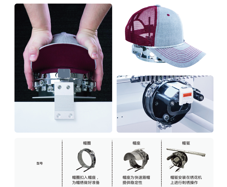 帽繡裝置由帽圈、帽座和帽驅(qū)組成。