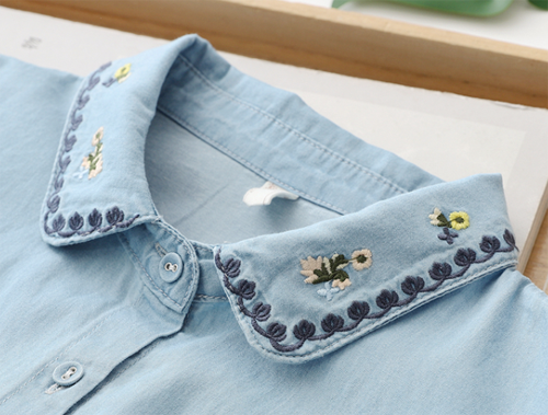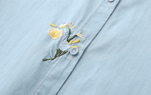 襯衫上的春日刺繡小花,具有硬挺感的牛仔也變得溫柔浪漫了許多。刺繡的位置可以是褲子口袋,也可以是襯衫的衣領(lǐng)上,小小的花朵圖案有很多的發(fā)揮空間。
