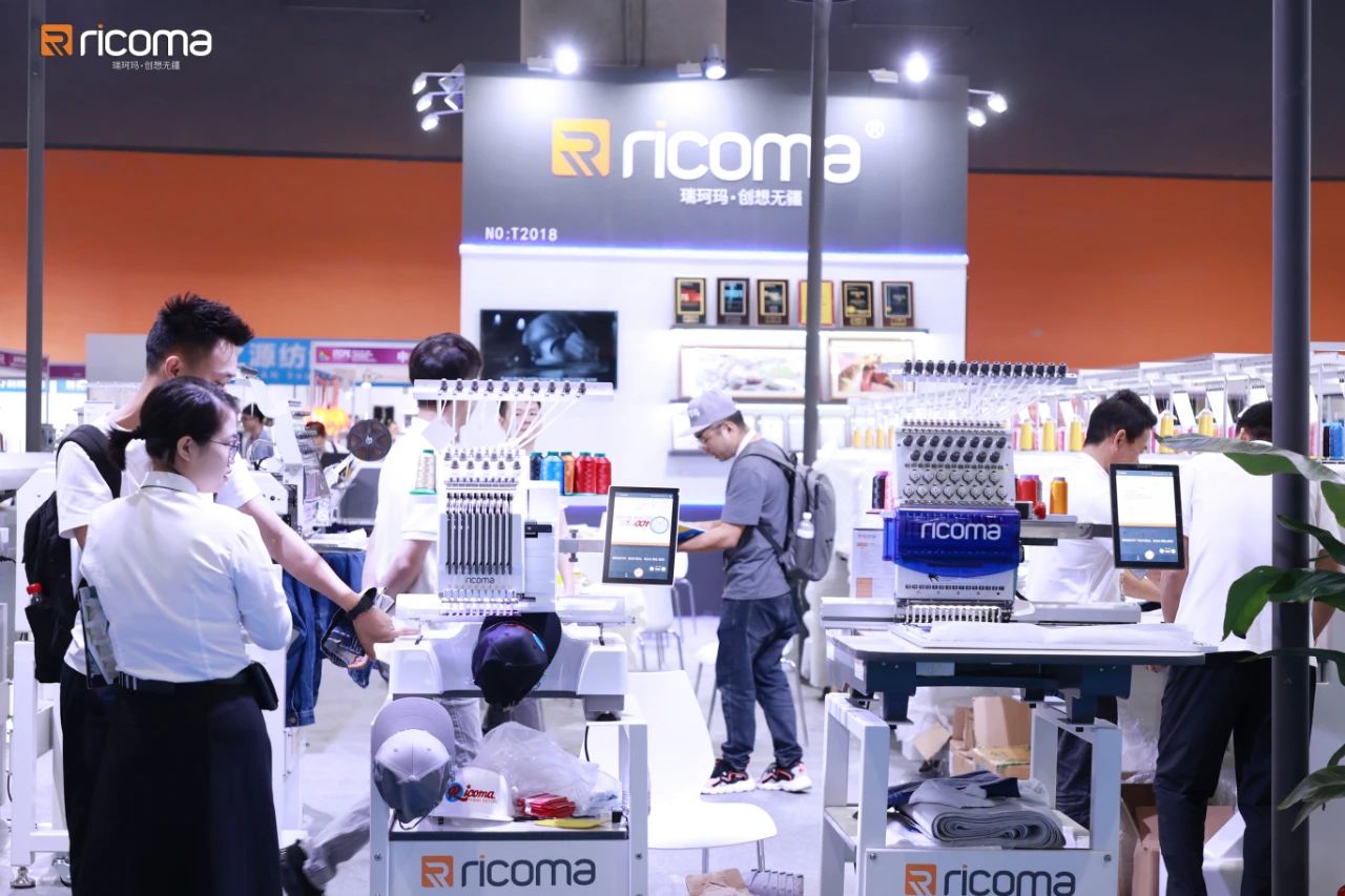 瑞珂瑪設備以高速度、高精度、智能化的技術優勢,在展位現場演示了大幅刺繡、成衣繡、裁片繡、成品帽繡和印花等多種應用場景的實現效果,吸引了大量到訪者、采購商的駐足參觀。