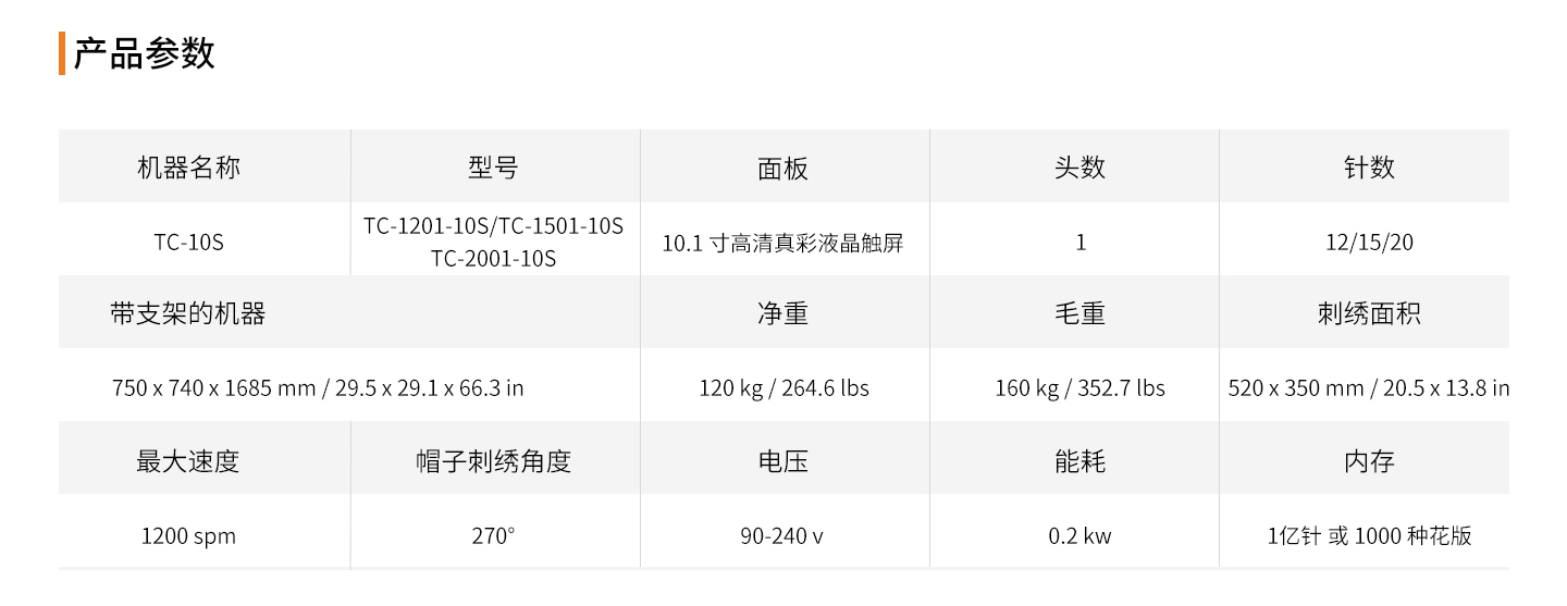 ● 內存:1億針或1000個花樣